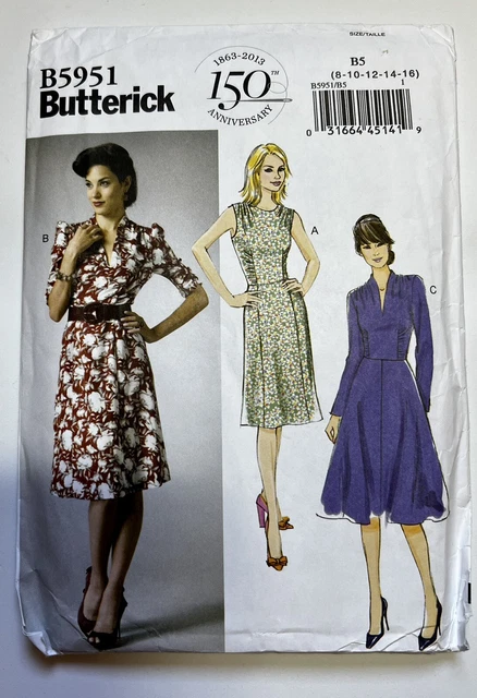 Butterick B5846 Sewing Pattern Unused Uncut 1940s Style Dress Sizes 10 18 20 00 Picclick Uk