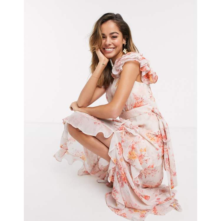 Forever New Ruffle Maxi Dress In Orange Floral Print Asos